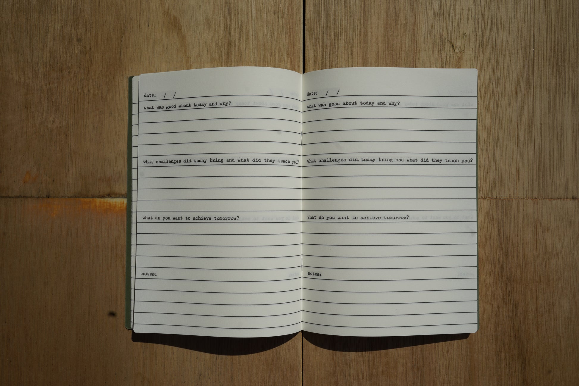 Our booklets are UK manufactured, and are made from 100% FSC certified paper. The prompted pages were hand typed by me on a genuine typewriter.